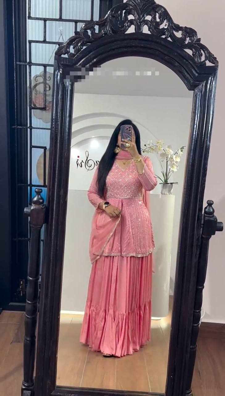Pc 434 Pink Chinon Sequence Work Lehenga