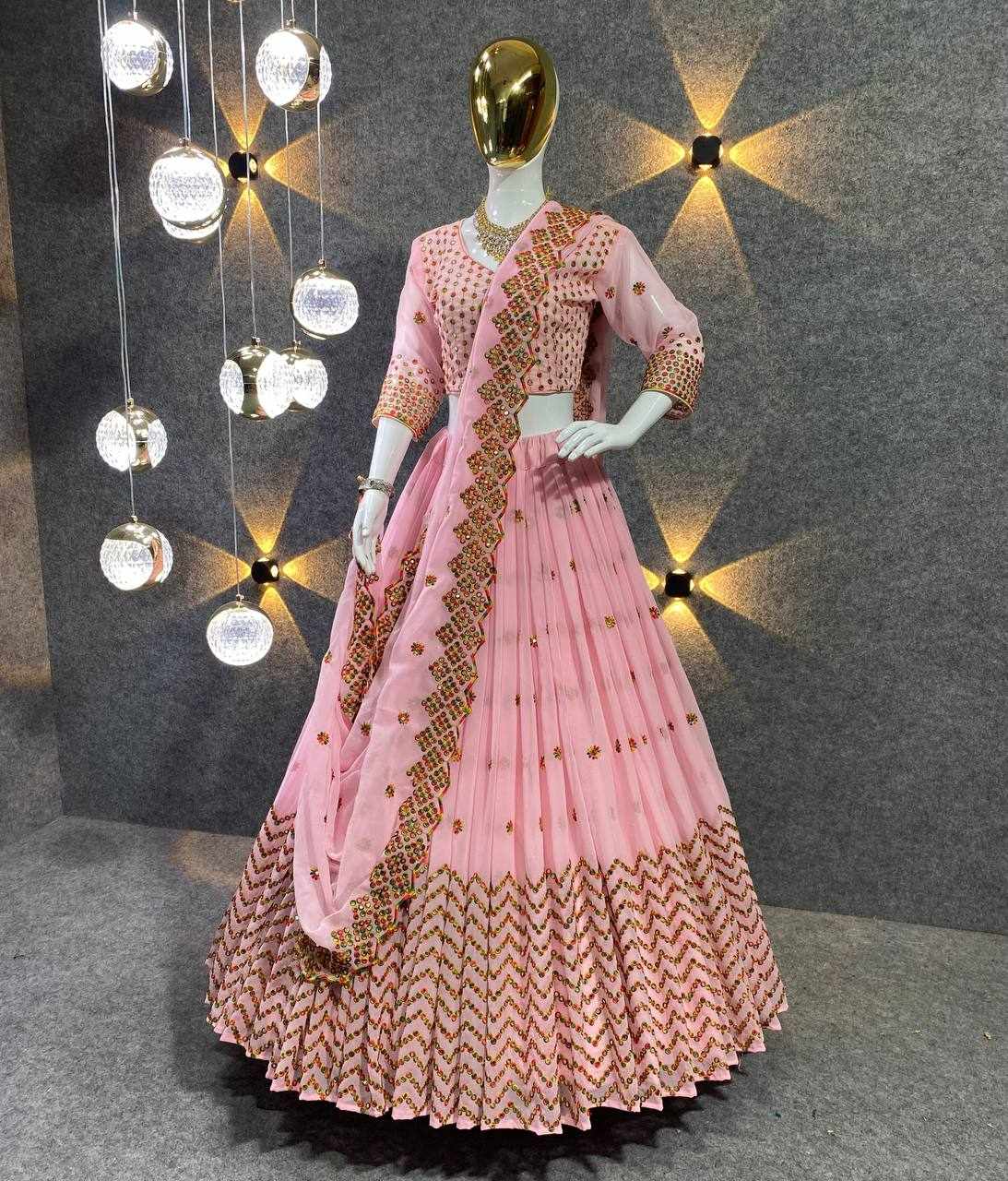 | Name : | MF 412 Peach Heavy Georgette Lehenga |