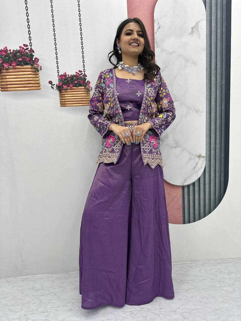 Pc 484 Wine Pure Tissue Simmer Party Wear Dress