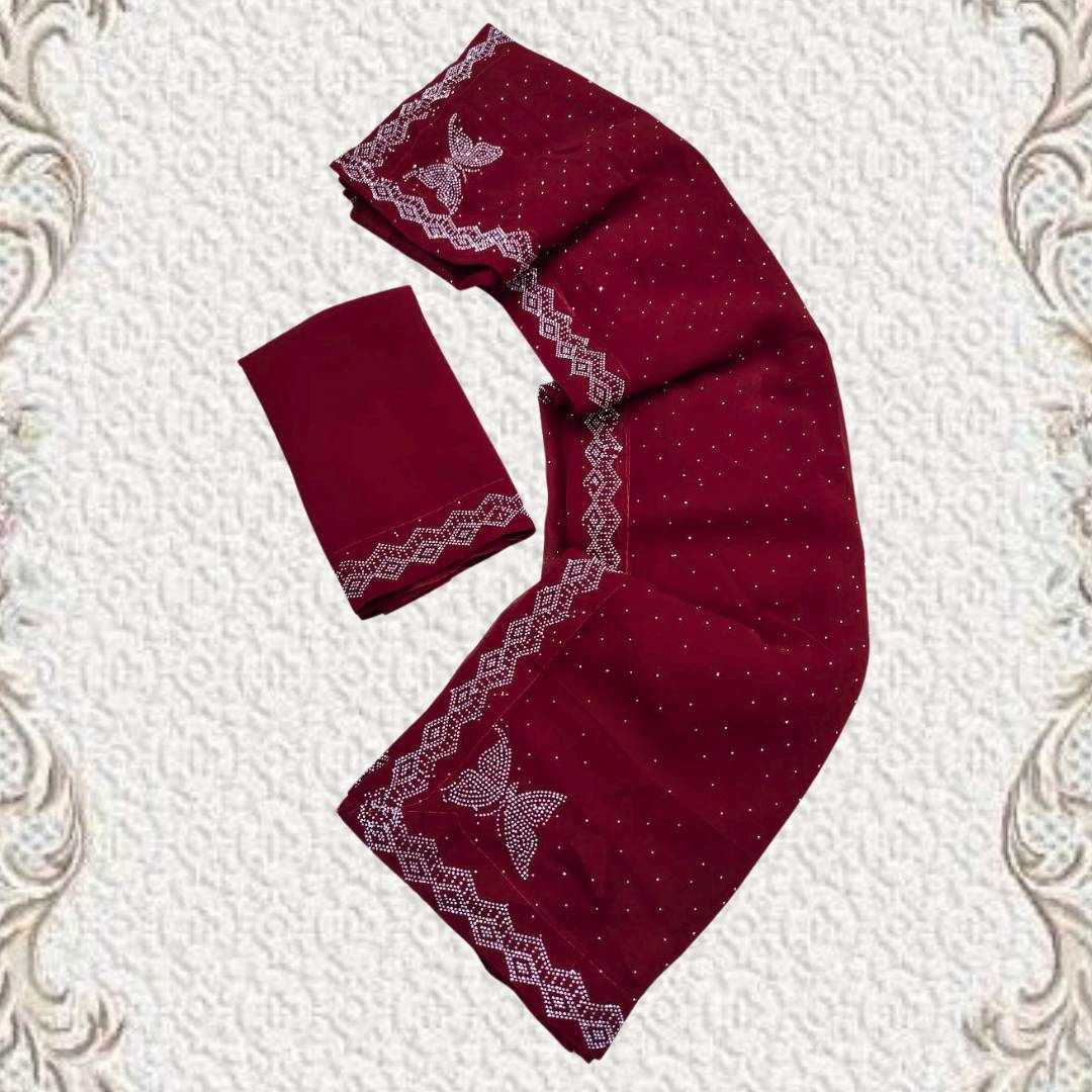 | Name : | S4s Maroon Siroski Butterfly Stones Lace Georgette Party Wear Saree |