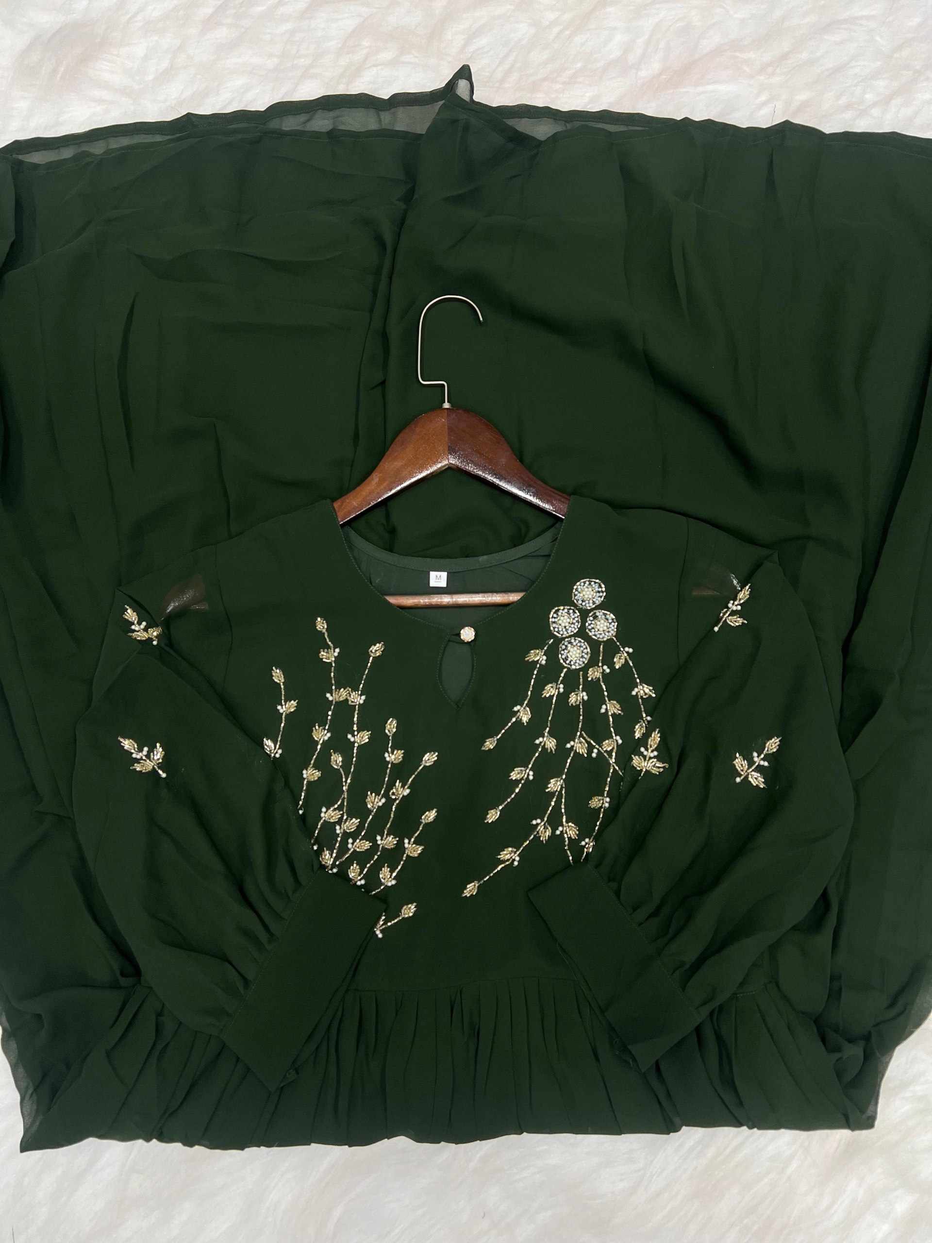 WM09 GREEN BLOOMING GEORGETTE HANDWORK KURTI